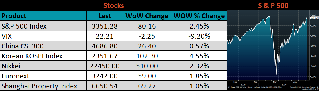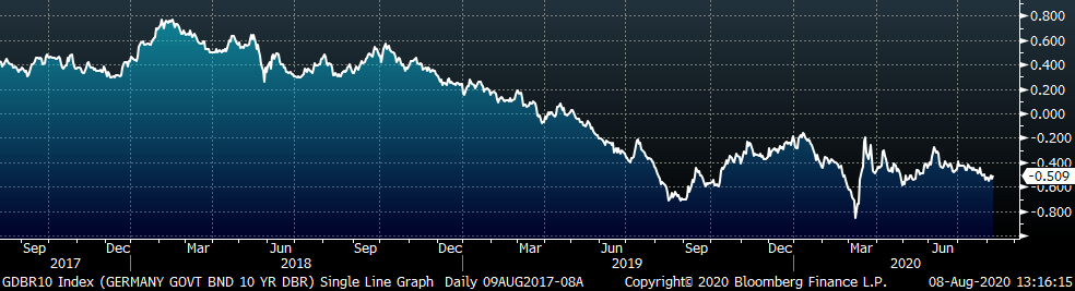 The U.S. 10-year yield was up 4 bps, closing the week at 0.56%. The German 10-year yield was up 2 bps to minus 0.51%, while the Japanese 10-year yield down 1bps to 0.01%.