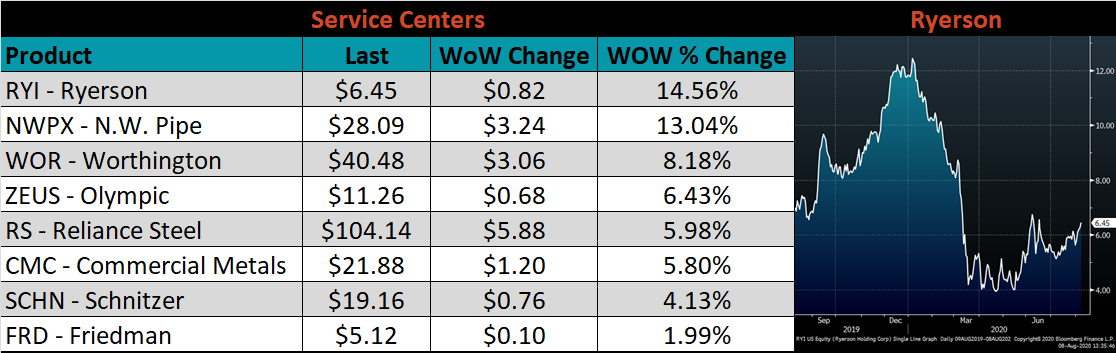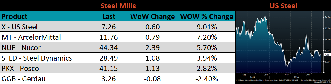 This commentary does not necessarily match the optimism in the headline index, leading us to be more cautious in our price outlook. With that said, upside risks continued to build this week as the expectation is for August to be the near term bottom in scrap pricing. Should lead times push out from here, it will confirm that mills order books are strong enough to support higher prices and allow the ferrous metals industry to join the manufacturing recovery.