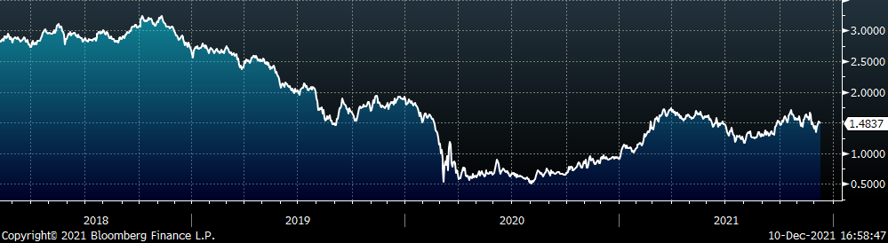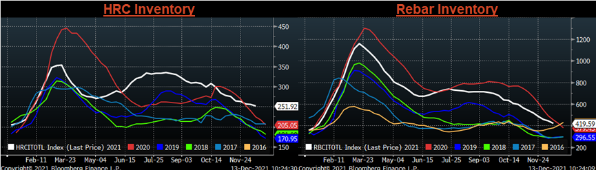 December flat rolled import license data is forecasting an increase of 44k to 1.2M MoM.