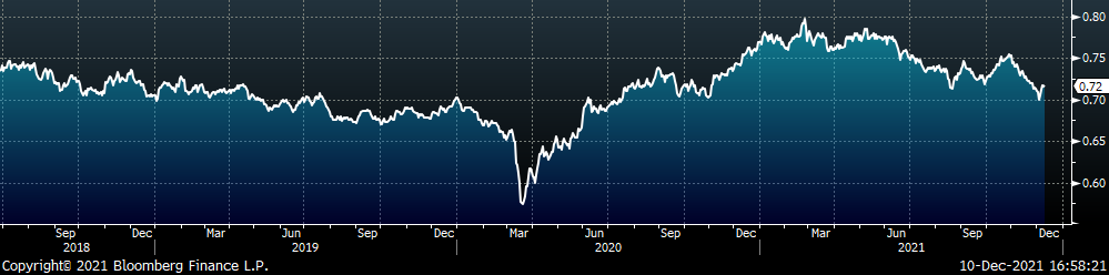 Last week, the January WTI crude oil future gained $5.41 or 8.2% to $71.67/bbl. The aggregate inventory level was up another 0.8%, while crude oil production increased to 11.7m bbl/day. The Baker Hughes North American rig count was up 4 rigs, while the U.S. rig count was up 7 rigs.