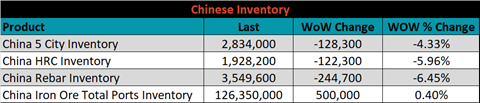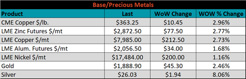 The CME Midwest HRC futures curve is below with last Friday’s settlements in white. Last week, the entire curve shifted higher.