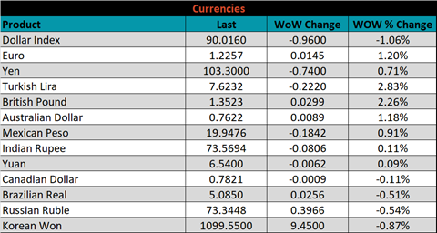 Below is the Midwest HRC price vs. each listed country’s export price using pricing from SBB Platts. We have adjusted each export price to include any tariff or transportation cost to get a comparable delivered price. All the watched differentials moved significantly higher. Typically, differentials at these levels would lead to a significant increase in imported steel; however, global shortages in supply minimize this threat as each listed country works to supply their respective markets.