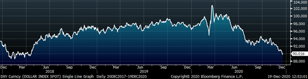 Broad increases in commodity prices due to a weakening US Dollar – A weak US Dollar makes commodities, priced in dollars, more attractive to buyers using foreign currencies. From the pandemic lows, commodity prices have rallied significantly including copper, aluminum, iron ore, scrap, zinc, nickel and silver.