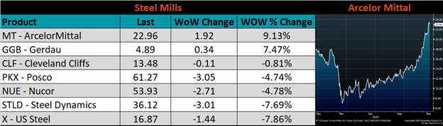 Coronavirus induced economic shutdowns – Recent developments out of the U.K. show a strand of the coronavirus that spreads more easily. While there has recently been encouraging developments regarding a vaccine, further shutdowns driven by the spread of Covid-19 could have significant effects on steel demand.