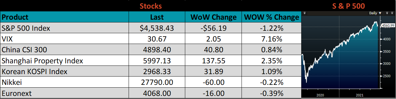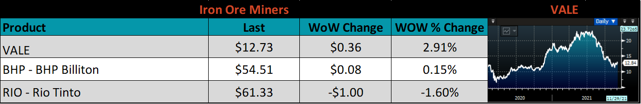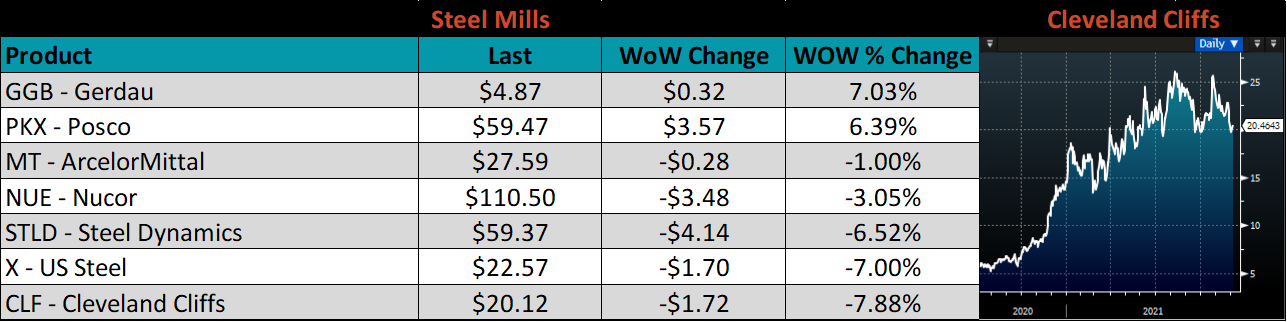 The CME Midwest HRC futures curve is below with last Friday’s settlements in white. Last week, the entire curve was lower, most significantly in Jan/Feb of 2022.