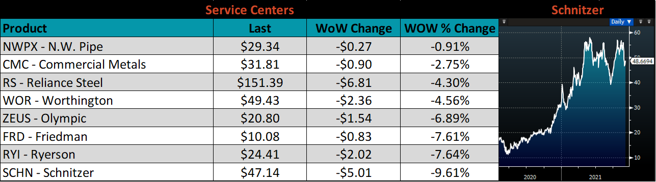 SBB Platt’s HRC, CRC and HDG pricing is below. The Midwest CRC, HDG, and HRC prices were all lower this week, 3.7%, 3.1%, and 1.1%, respectively. Outside of the U.S., the East Asian CRC price was down 15.5%.