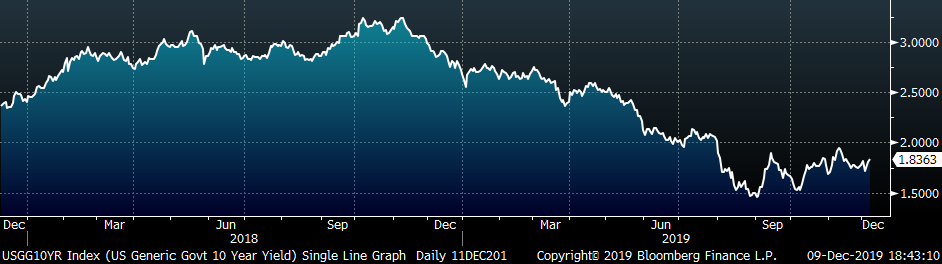 This month’s global PMI printings show overall weakness in many major manufacturing countries. The Chinese Official PMI printed 0.9 points higher and into expansionary territory for the first time since April. The German and Eurozone PMI’s both printed 2 points and 1 point higher, respectively but remain in contraction, along with the U.S., which printed slightly lower.