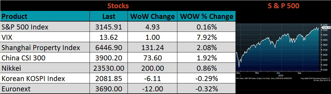 Last week, the January WTI crude oil future gained $4.03 or 7.3% to $59.20/bbl. The aggregate inventory level was up 0.2% and crude oil production held at 12.9m bbl/day. The Baker Hughes North American rig count and U.S. rig count were each down three rigs.