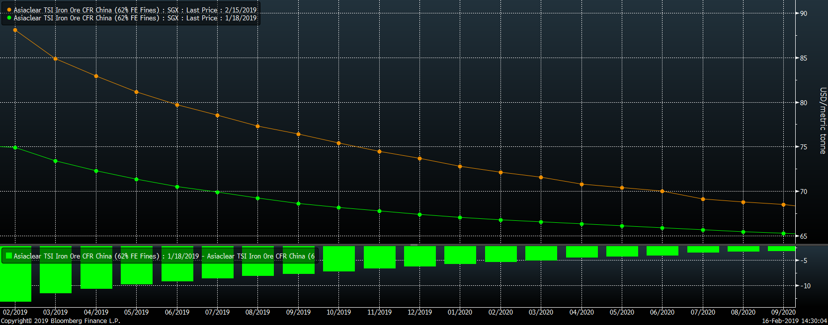 The SGX iron ore futures curve has continued to rally significantly with the front of the curve steepening.