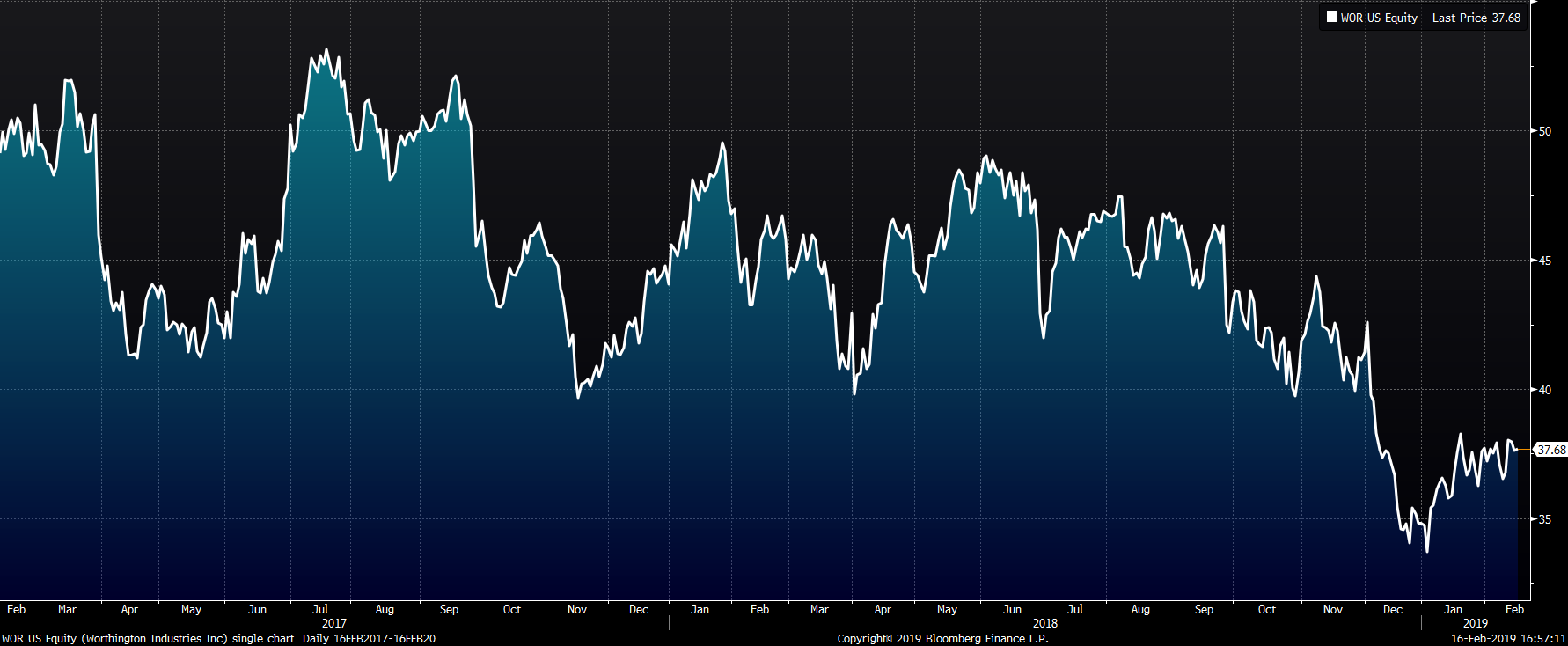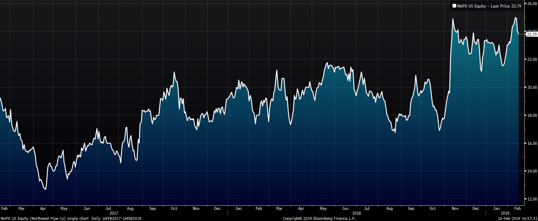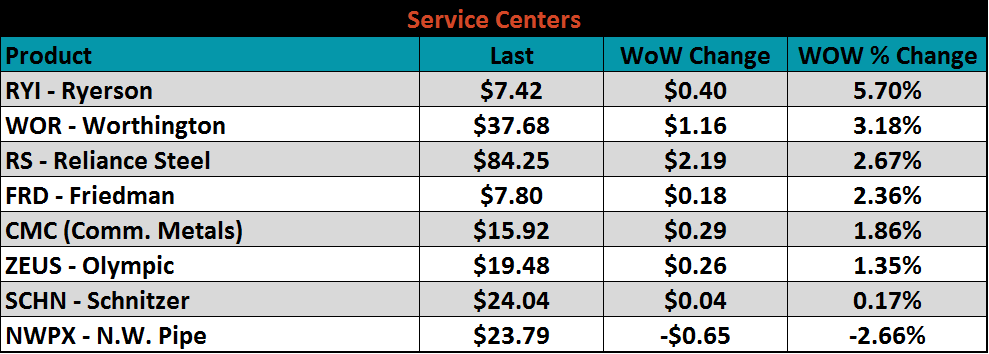 Service center stocks were mostly higher. Worthington was up 3.2%, while Northwest Pipe was down 2.7%.