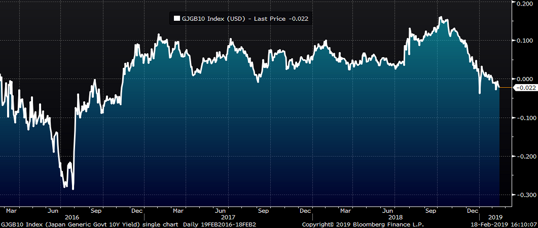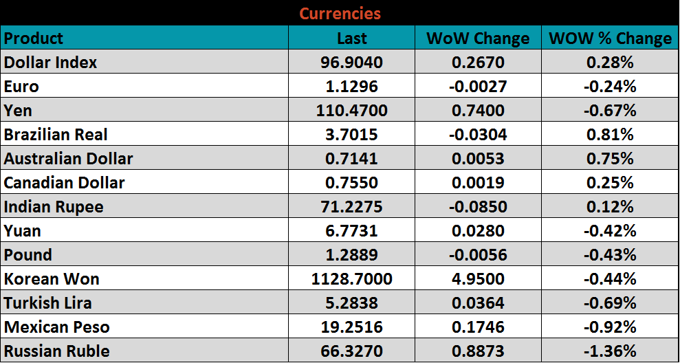 The U.S. ten-year treasury yield was up three basis points closing the week at 2.66%. The 2-year Treasury Yield settled two basis points above the 5-year yield. The yield on the Japanese 10-year bond fell to -0.02%, the first time the rate has gone negative since November 2016.