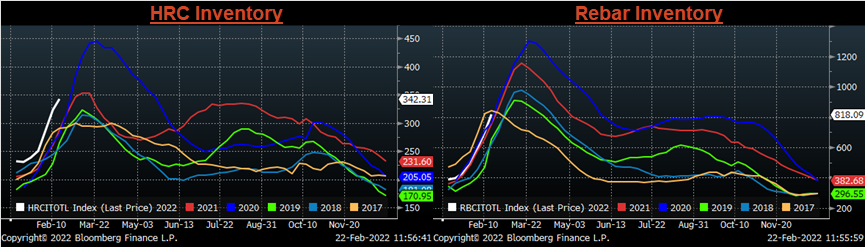 Once you adjust for existing tariffs and transportation costs, near-term domestic prices are below the rest of the world (except for Korea and Brazil, who are both on quotas). This price correction has already led to a nearly 50% decline in HRC price, but now, it is losing downward momentum. As more of these support levels are reached and mills take off production, the last gasp of a falling “spot market” will happen sooner than you think. As it currently stands, the futures curve allows you to lock in the remainder of the year below $1,000. It is important to note that prices in 2H22 have been increasing since late January, even as the spot price has fallen. If you are only focused on getting the lowest price on you spot material today, these opportunities may pass you by. Historically speaking, by the time the spot price reaches its bottom, the futures have already moved.