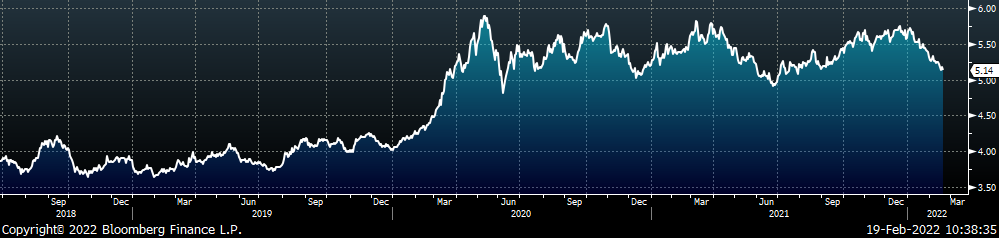 Last week, the March WTI crude oil future lost $2.03 or 2.2% to $91.07/bbl. The aggregate inventory level was down 0.2%, while crude oil production remains at 11.6m bbl/day. The Baker Hughes North American rig count was up by another 11 rigs, and the U.S. rig count was up 10 rigs.