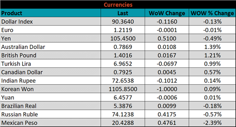 Below is the Midwest HRC price vs. each listed country’s export price using pricing from SBB Platts. We have adjusted each export price to include any tariff or transportation cost to get a comparable delivered price. The watched countries differentials all decreased, with the U.S. HRC price slightly lower and global prices showing moderate strength.