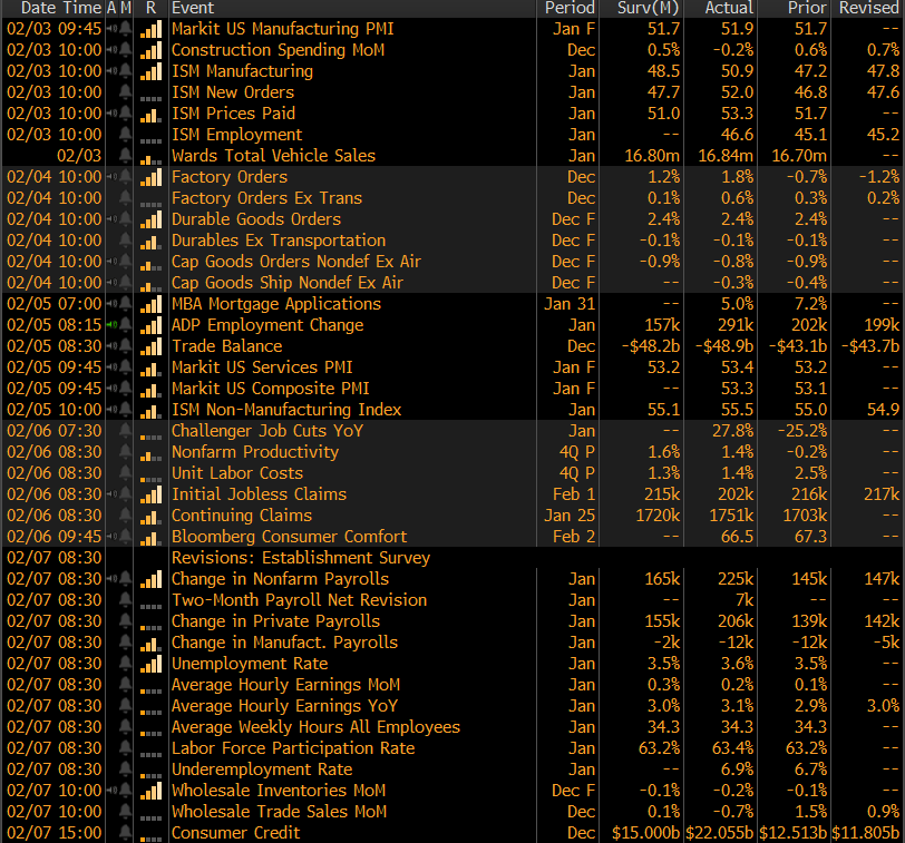 The January ISM Manufacturing PMI and subindexes are below. The topline PMI number was up 3.1 points and printed into expansion for the first time since July of last year.