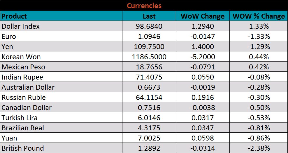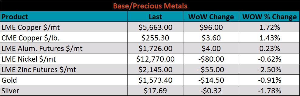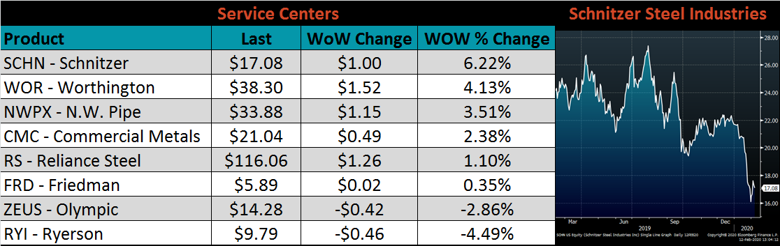 SBB Platt’s HRC, CRC and HDG pricing is below. The Midwest HDG and CRC prices were up, 0.9% and 0.2%, while HRC was down 1.4%. The Chinese HRC price was down 4.8%, while Brazilian HRC was up 9.4%.