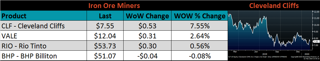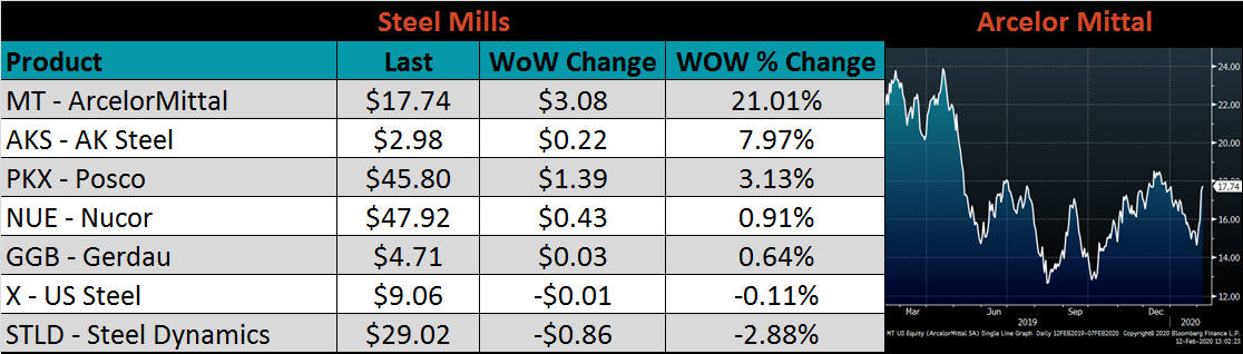 March ferrous futures were mixed. The Chinese HRC future lost 9.1% due to uncertainty around the Coronavirus, while busheling gained 5.8%.