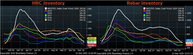 For those who are short steel or short ferrous futures, 2021 has yet to offer any reprieve from the historic price rally of 2020. Over the past two holiday weeks, it appeared that small cracks were forming in select markets in the ferrous space. Chinese HRC and iron ore prices pulled back from their recent highs in December, the first sign of any weakness in months. However, the start of this week initiated another leg in the ferrous price rally, driven by moves higher in scrap prices. The busheling forward curve move 10% higher on Monday, with expectations of prices moving well above $500 in January. The HRC curve followed this move higher on Tuesday, with the February expiration moving up $79 in one day! The rally is still very much intact, despite the holiday market lull. Turning to the physical market, we continue to see limited spot material, with extended lead times and shockingly high offer prices. Mills are looking toward $1,100 per ton for HRC offers. Additionally, we are starting to see mills only producing select types of spot tons that are easier for them to make, increasing profitability and reducing stress on their assets. They continue to hold significant control of the market. One threat to this control moving into next year is foreign material competing in the domestic market. This week we will look at how pricing will influence the significance of this threat.