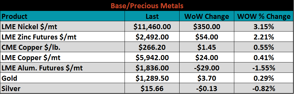 Flat rolled indexes were mixed. Chinese Spot HRC was up $11 or 2.2% WoW.
