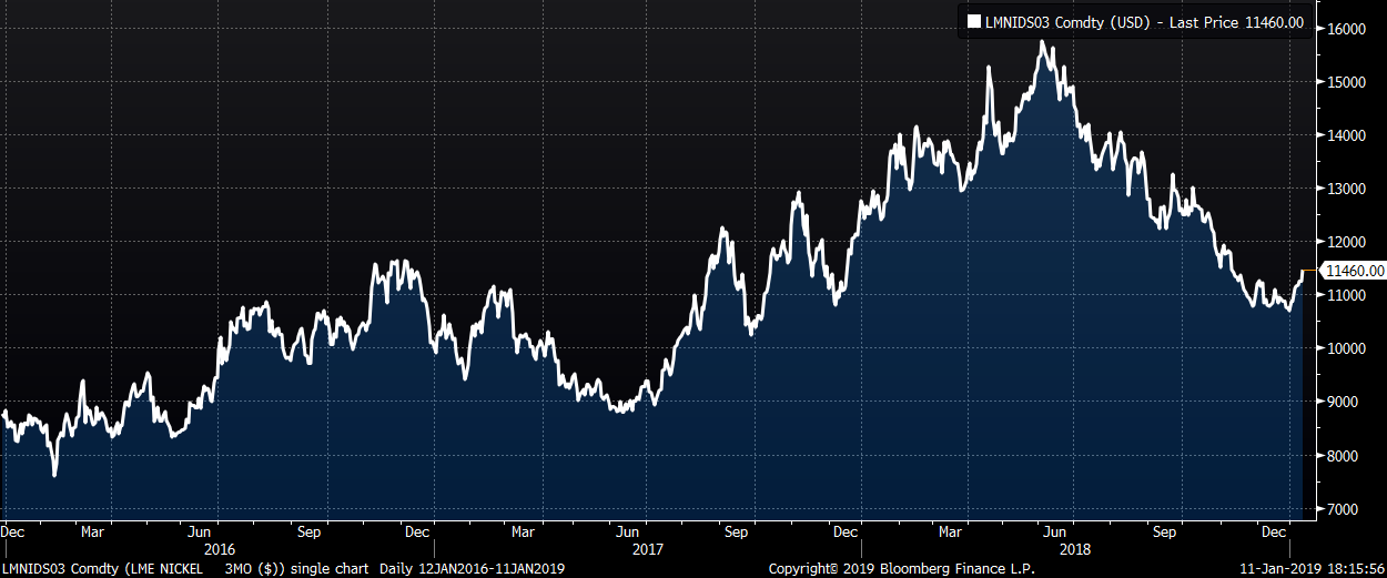 The February WTI crude oil future gained $3.63 or 7.57% to $51.59/bbl. Crude oil inventory was down 0.4%, while distillate and gasoline inventory added 8.2% and 3.4%, respectively. The aggregate inventory level was up 2.1%. Crude oil production was unchanged at 11.7m bbl/day. The U.S. rig count was unchanged while the North American added 108 rigs, all from Canada. The February natural gas future rose $0.06 or 1.8% to $3.10/mmBtu. Natural gas inventory fell 3.4%.