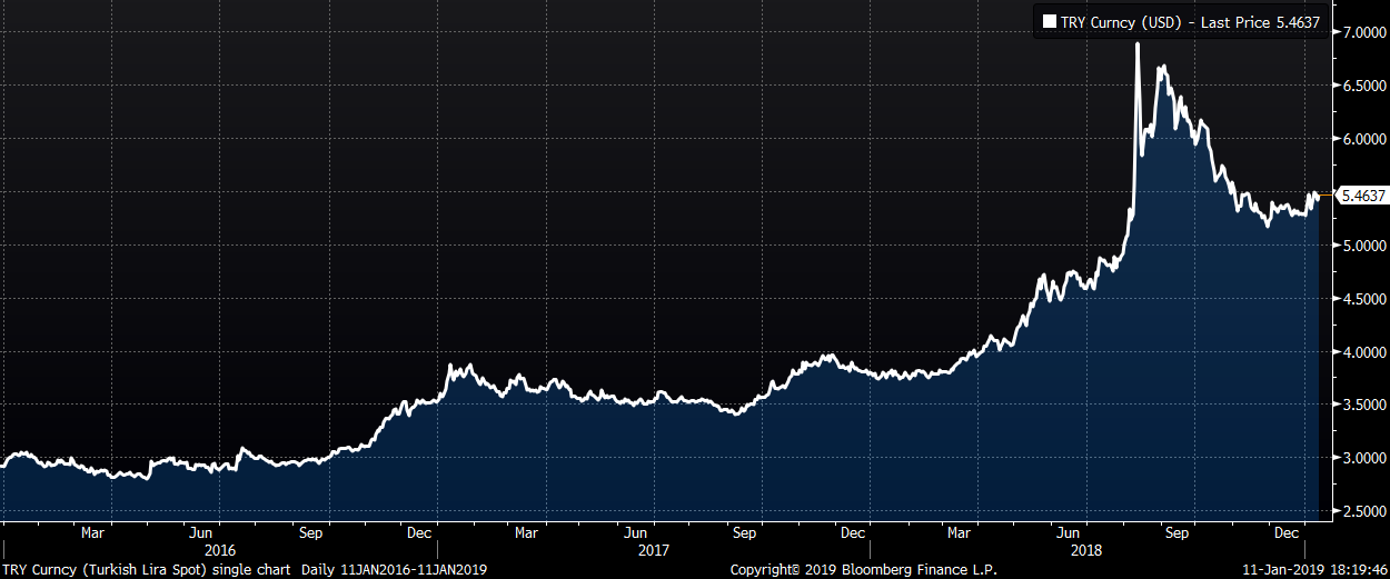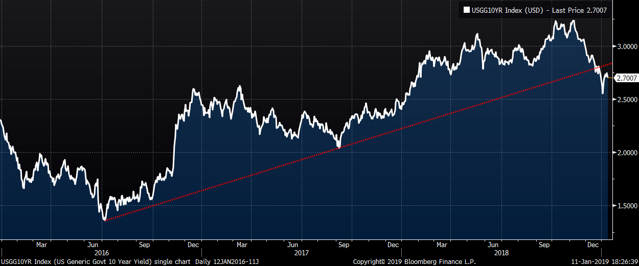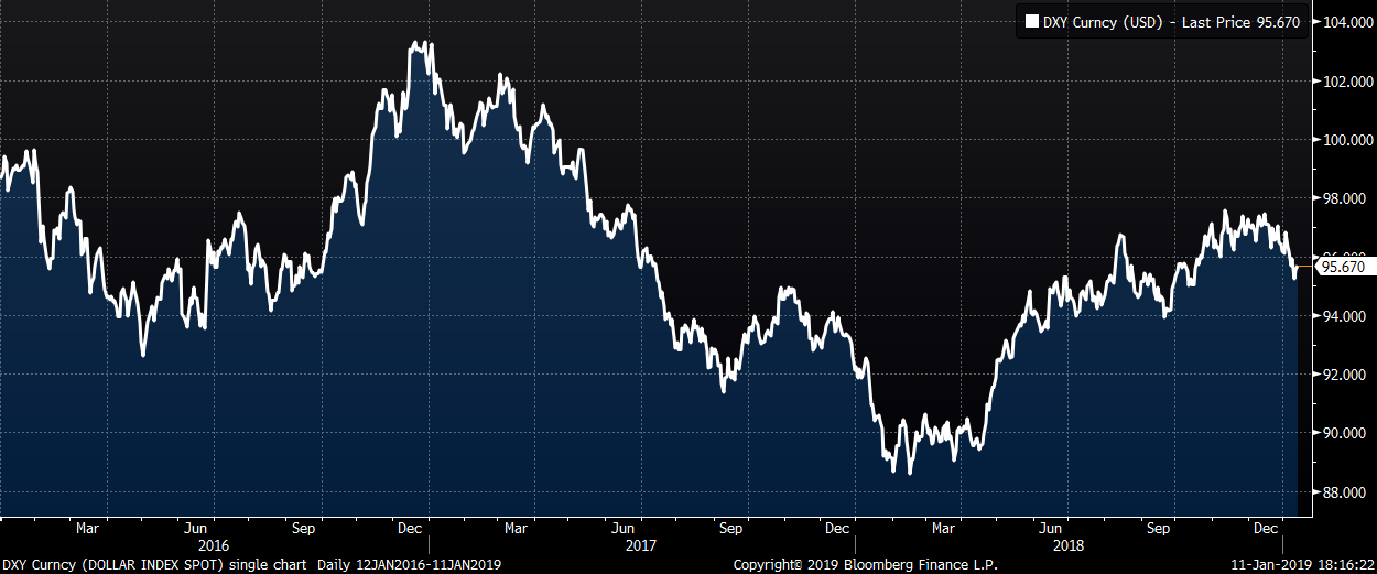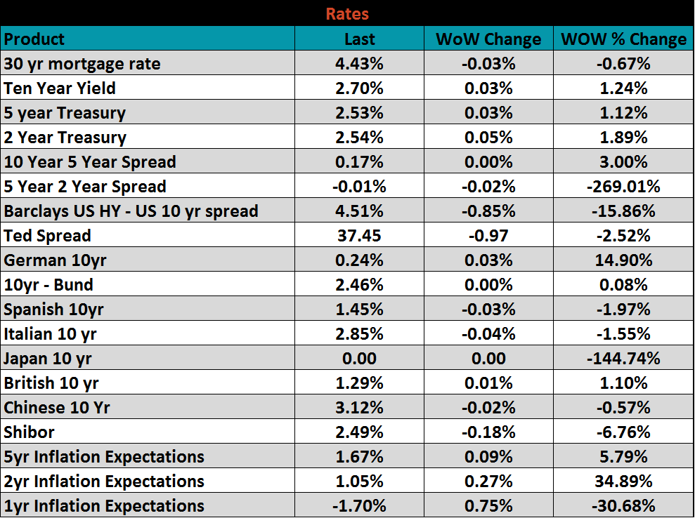 Last week’s economic data is posted to the right. Average hourly earnings rose by 0.3% to 1.1% YoY. The December CPI Ex-Food and Energy was up 2.2%, unchanged MoM and in line with expectations. The NFIB Small Business Optimism Index fell slightly to 104.4, but beat expectations of a fall to 103. The FOMC meeting minutes indicated there was more debate about slowing the rate of interest rate increases than first thought.