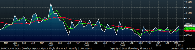 January AZ/AL import license data is forecasting a 11k increase to 74k.
