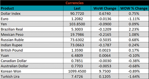 Below is the Midwest HRC price vs. each listed country’s export price using pricing from SBB Platts. We have adjusted each export price to include any tariff or transportation cost to get a comparable delivered price. All the watched differentials moved higher, except for the Russian differential, which was down over $60.