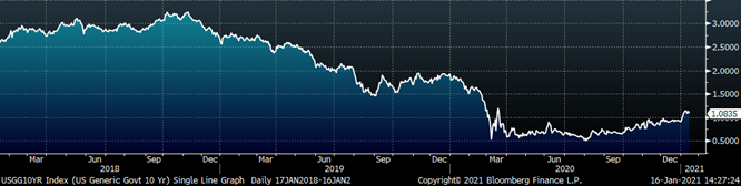 Last week, the February WTI crude oil future gained another $0.12 or 0.23% to $52.36/bbl. The aggregate inventory level was up 0.7% and crude oil production remains at 11m bbl/day. The Baker Hughes North American rig count was up by another 57 rigs, and the U.S. rig count was up 13 rigs.