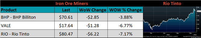 February ferrous futures were mixed. Turkish scrap was down 8%, while Aussie coking coal was up 5.9%.