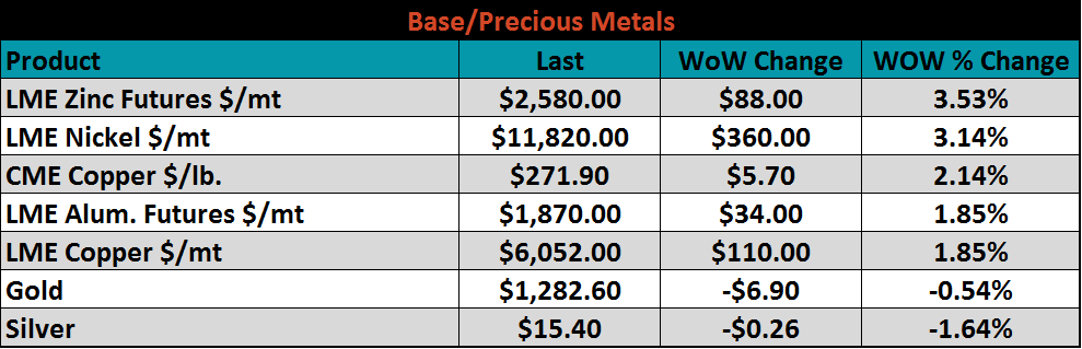 SBB Platt’s HRC, CRC and HDG WoW pricing is below. The U.S. Midwest HRC price was down 2.7%, the Midwest CRC price fell 5.9% and the Midwest HDG price was down 3.1%. The East Asian Import HRC price was up 1.8%, while the Indian and Middle East Import HRC prices fell 3.5% and 2.4%, respectively.