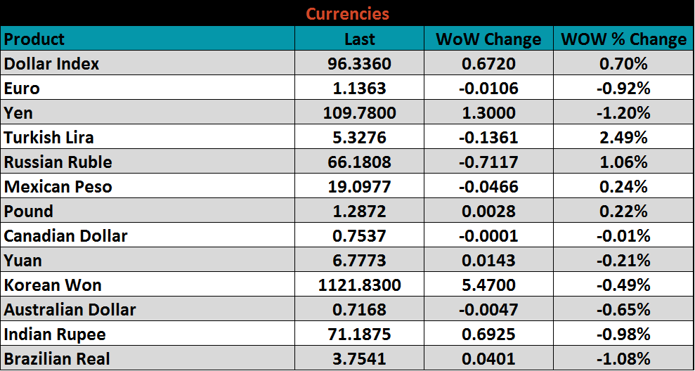 Below are HRC and CRC Midwest vs. each country’s export price differentials using pricing from SBB Platts. Both HRC and CRC are down WoW.
