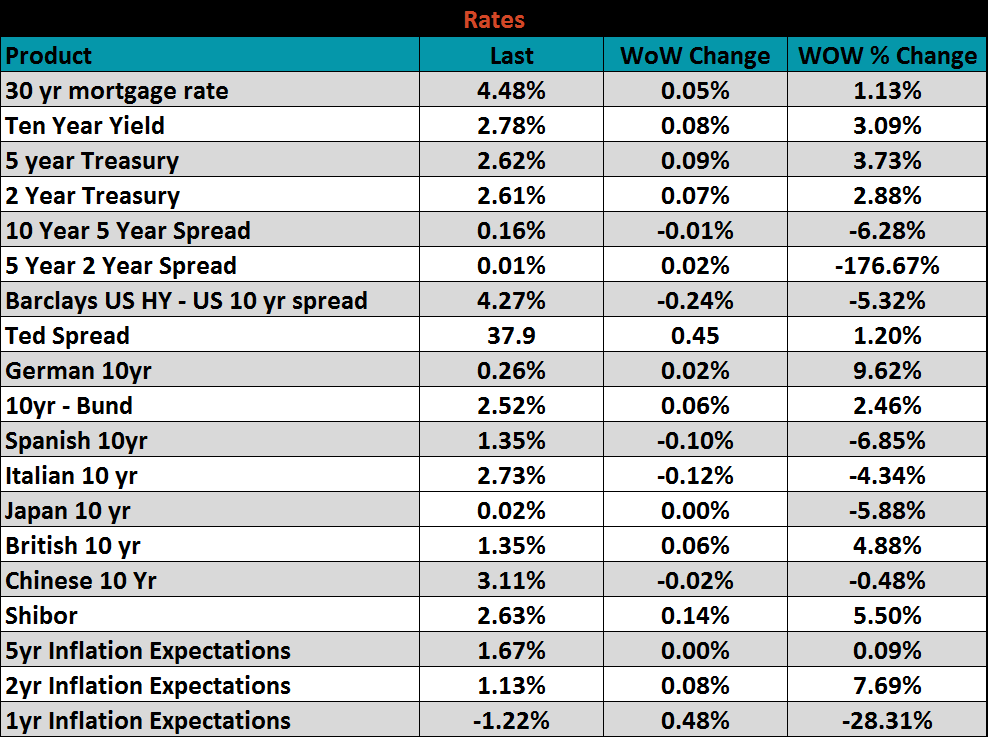 Last week’s economic data is to the right. MBA mortgage applications were down to 13.5%, while the NAHB Housing Market Index was up to 58, beating expectations. The Philadelphia Fed Business Outlook rose to 17.0 from last week’s revision of 9.1. The Empire Manufacturing Index fell far below expectations to 3.9 from last month’s revised reading up 11.5.