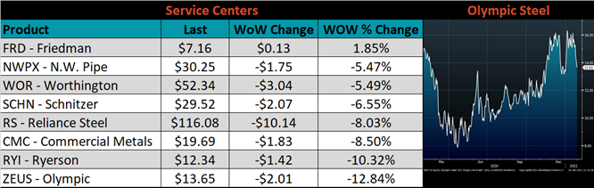 Global flat rolled indexes were mixed. Midwest HRC was up 5.1%, while Black Sea HRC was down 2.7%.
