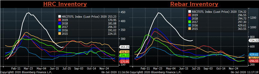 With all of these positive developments coming out of the economy, how is it that spot HRC prices have drifted lower and are expected to decline further? At the end of the day, the price is determined by market specific supply and demand. Demand in the steel sector, as well as the economy at large, remains below pre-crisis levels. Many businesses have scrapped or delayed capital expenditures for long-term projects due to the continued uncertainty. As long as health threats from the coronavirus persist, the economic recovery will be at risk. Automotive factories have restarted in a limited capacity, but their steel demand has lagged as supply chains were forced to hold high inventory levels during the shutdown. While oil prices have recovered significantly from their spring lows, they are still only hovering near $40, which has yet to spur a recovery in rig counts or steel intensive projects. On top of this depressed demand picture, mills are planning to add supply to the market over the next several months. US Steel is planning to restart their Gary #6 blast furnace in early July, and there are rumors that several more restarts are likely later in the month. If the current demand levels persist, this will lead to an oversupplied market and drive the price even lower.