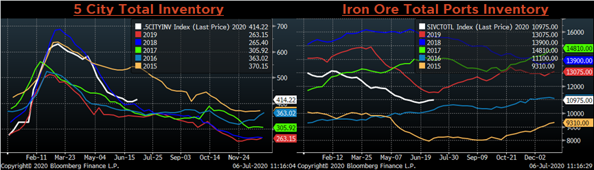 August ferrous futures were mixed. The busheling future gained 2.4%, while the iron ore future lost another 3.5%.