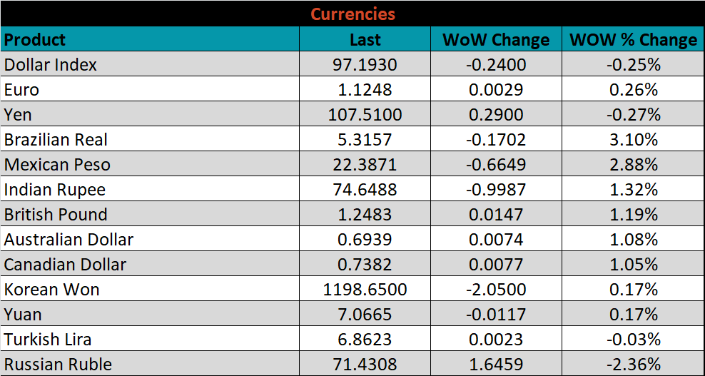 The CME Midwest HRC futures curve is below with last Friday’s settlements in white. Last week the front of the curve moved lower, while the rest of the curve showed very little change.