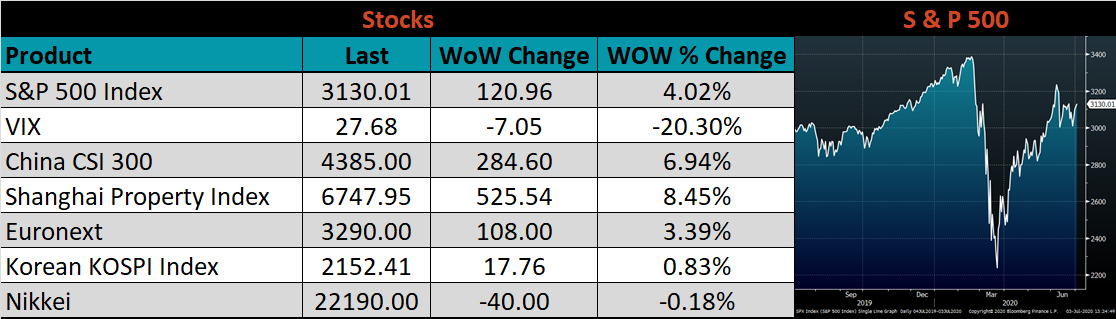 Last week, the August WTI crude oil future gained $1.83 or 4.8% to $40.32/bbl. The aggregate inventory level was down 0.7%, while crude oil production flat at 11.1m bbl/day. The Baker Hughes North American rig count was unchanged, while the U.S. rig count was down 2 rigs.