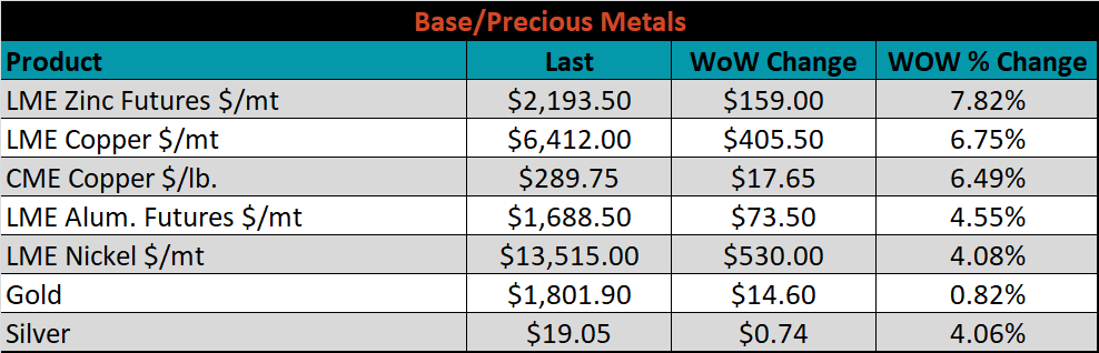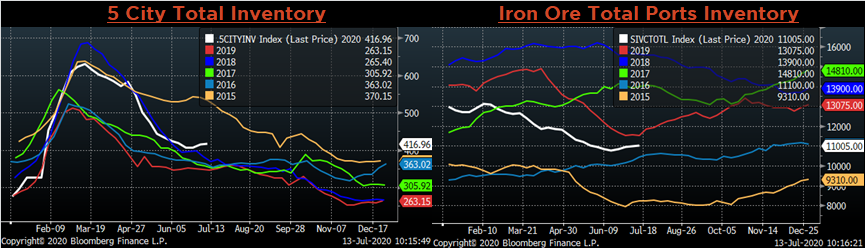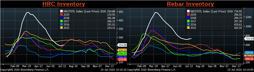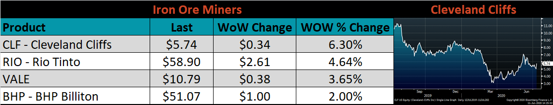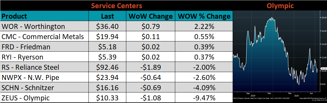 Raw material prices were flat to mixed. The iron ore futures were up 9.3%, while Midwest Busheling was down 10%.