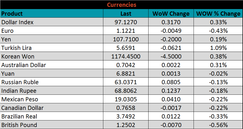 The CME Midwest HRC futures curve is shown below with last Friday’s settlements in white. The curve moved slightly higher across all expirations.
