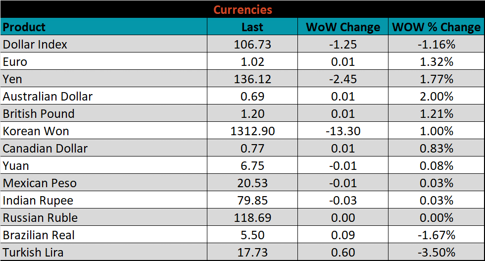 The CME Midwest HRC futures curve is above last Friday’s settlements in orange. Both the front and back end of the curve rose last week with middle months Nov-22 and Dec-22 remaining unchanged.