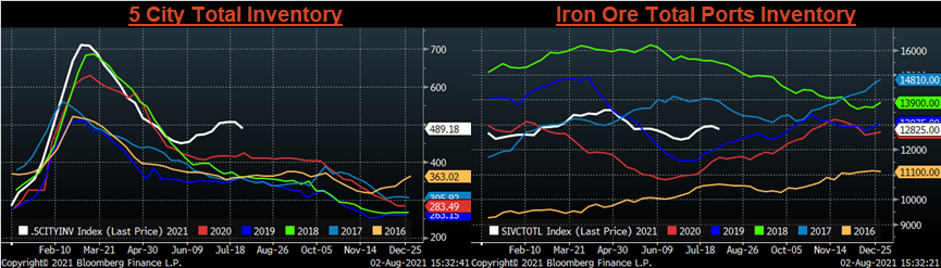 September ferrous futures were mixed. Iron ore lost another 9.1%, while the Midwest HRC future gained 1.8%.