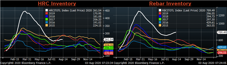 July flat rolled import license data is forecasting an increase of 83k to 657k MoM.