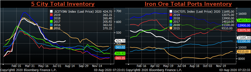 September ferrous futures were mostly higher, led by busheling, which gained another 2.5%.