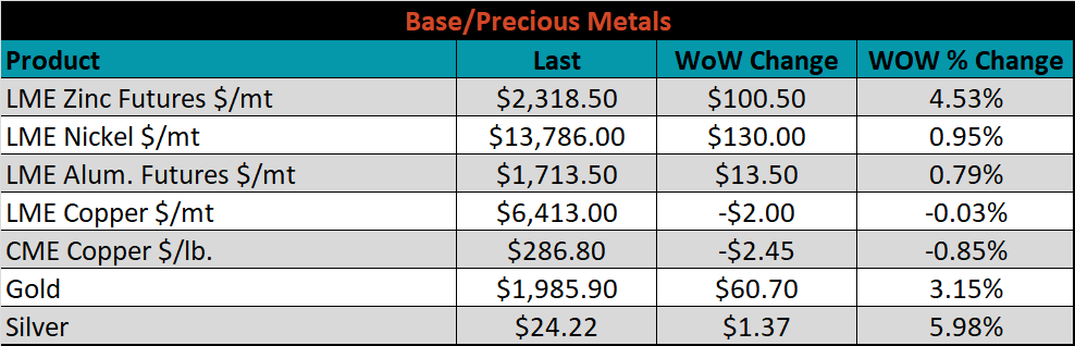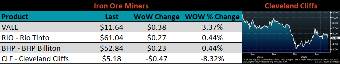 The CME Midwest HRC futures curve is below with last Friday’s settlements in white. Last week, the back of the curve shifted higher while the very front dropped.