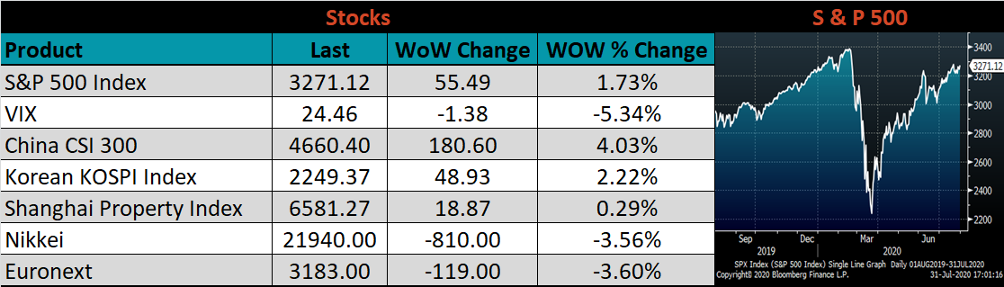 Last week, the September WTI crude oil future fell $1.02 or 2.5% to $40.27/bbl. The aggregate inventory level was down 1%, while crude oil production was flat at 11.1m bbl/day. The Baker Hughes North American rig count was up three rigs, while the U.S. rig count was flat.