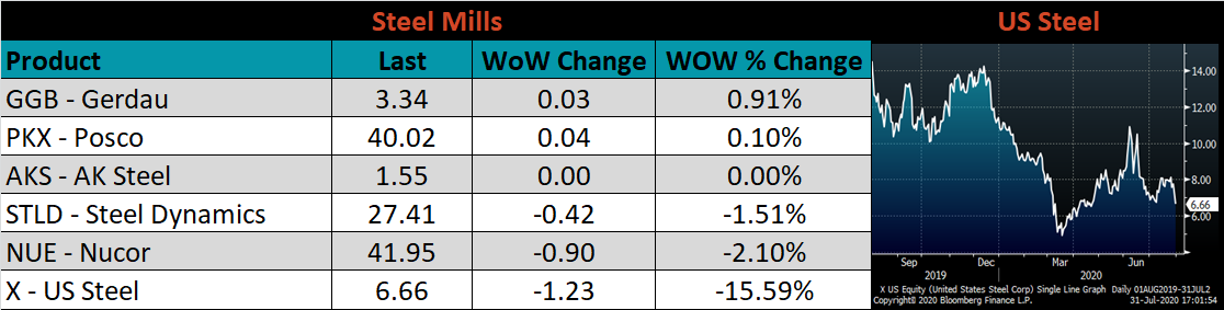While no individual factor above will stop the current decline, together they begin to build the case for the bottom being near. However, the spot price has steadily declined even while these upside risk existed over the past month. These factors may support the recent price increases and higher offers from mills, but mills are likely just posturing as they focus on index prints during the second week of the month, which sets the price for the majority of their contract sales. The price for these contracts will likely be slightly below the levels of July, but this expected price has fallen over the past few weeks, leading us to believe that buyers have likely placed August contract tonnage amounts closer to their minimum required for the month. Therefore, it is doubtful that there will be significant restocking to shore up weak order books. Additionally, the scrap outlook for August is showing another decline, which will also weigh on finished product prices. Until we see the scrap market turn around and lead times push out, it is unlikely that we will see a long-term price bottom form.
