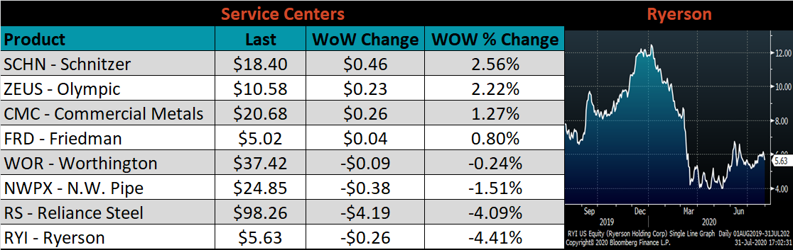 SBB Platt’s HRC, CRC and HDG pricing is below. The Midwest HRC, HDG, and CRC prices were down 2.6%, 0.3% and 0.2%, respectively. Globally, the China export HRC price was up another 1.7%.