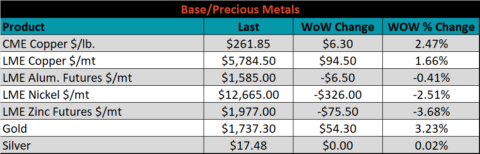 SBB Platt’s HRC, CRC and HDG pricing is below. The Midwest CRC, HDG and HRC prices were up 2.3%, 0.5% and 0.2%, respectively. Globally, the Russian export HRC and CRC prices were up, 13.4% and 10.4%, respectively.