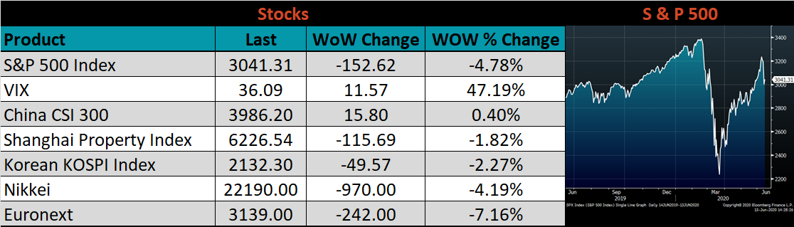 Last week, the July WTI crude oil future lost $3.29 or 8.3% to $36.26/bbl. The aggregate inventory level was up 0.9%, while crude oil production was down to 11.1m bbl/day. The Baker Hughes North American rig count was down another 5 rigs and the U.S. rig count was down 5 rigs.