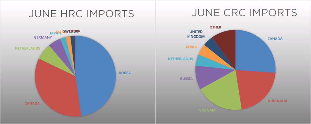June flat rolled import license data is forecasting an increase to 780k, up 19k MoM.